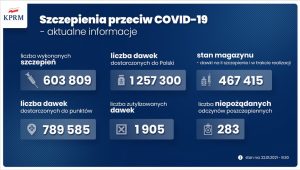 Liczba dawek dostarczonych do punktów wyniosła 789 585, zaś liczba zutylizowanych dawek szczepionki sięgnęła 1 905.