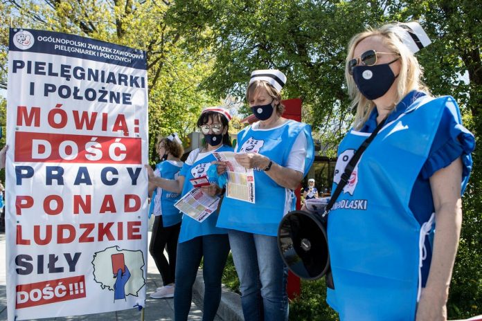 „Epidemia obnażyła, jak bardzo nas brakuje przy łóżkach chorych. W najbliższych pięciu latach z zawodu odejdzie 100 tys. pielęgniarek, z kolei pracę w zawodzie rozpocznie zaledwie 20 tysięcy” – podkreślała Krystyna Ptok, przewodnicząca Ogólnopolskiego Związku Zawodowego Pielęgniarek i Położnych (OZZPiP).