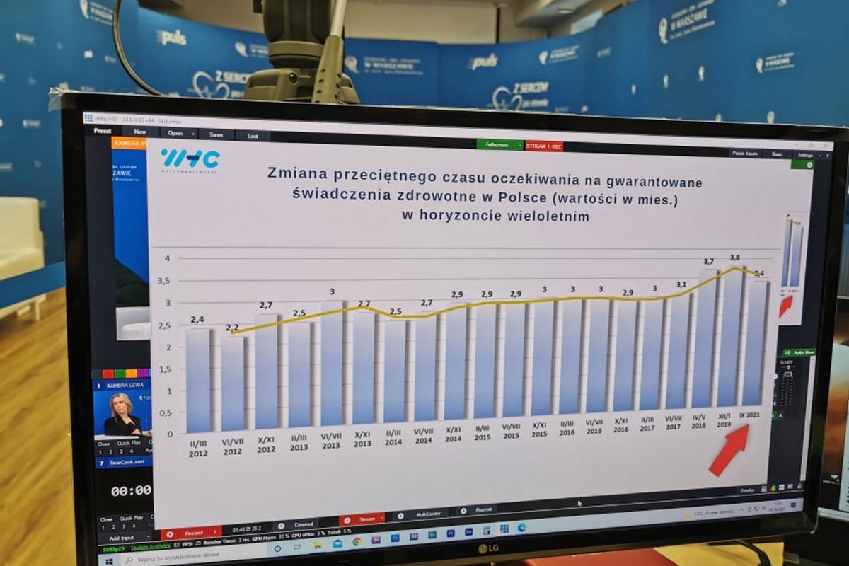 Według danych Fundacji Watch Health Care, od ostatniego Barometru opublikowanego w lutym 2019 r. nastąpiło skrócenie czasu oczekiwania na pojedyncze świadczenie zdrowotne o 0,4 mies. Obecnie (dane z września 2021) czas oczekiwania na pojedyncze świadczenie wynosi 3,4 mies. „Wystawiono mniej skierowań na świadczenia w ubiegłym roku” – komentuje te dane Maciej Miłkowski, wiceminister zdrowia. – „Teraz obserwujemy dziwną sytuację – są kolejki oczekujących, a notujemy niedowykonania” – dodaje.