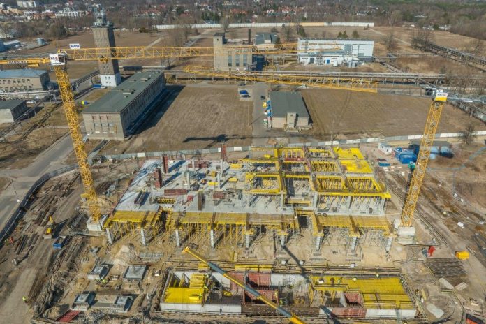 Prowadzone przez Budimex prace budowlane dla I etapu realizacji obiektu, aktualnie znajdują się na etapie wykonywania konstrukcji żelbetowej wraz z robotami ziemnymi.